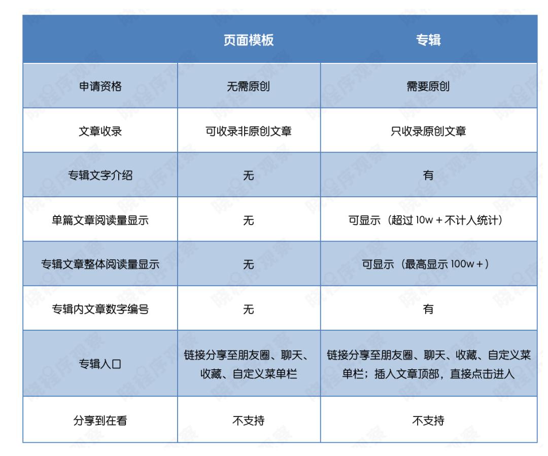 为了方便大家对一目了然的了解「专辑」和「页面模板」的区别,我们做了一张表格,如下: