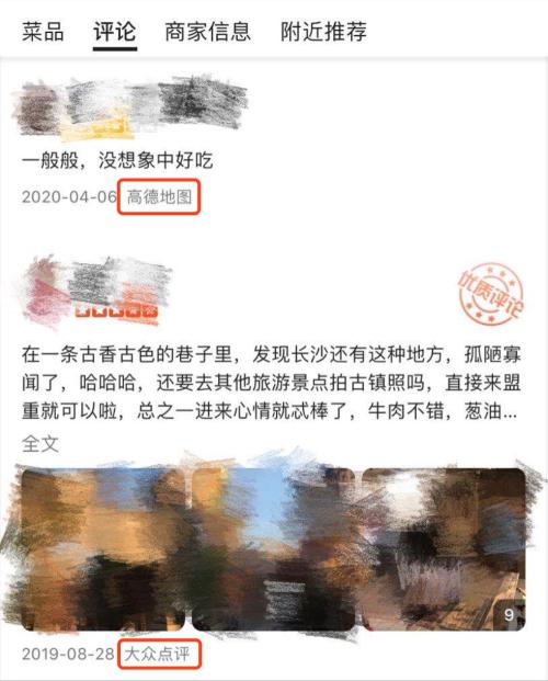 在高德地图上搜索某家餐厅,位置、信息、团购、评价等都在下拉页出现。而高德除了引用了大众点评的评价体系,似乎也在开始培养自己的评价体系。