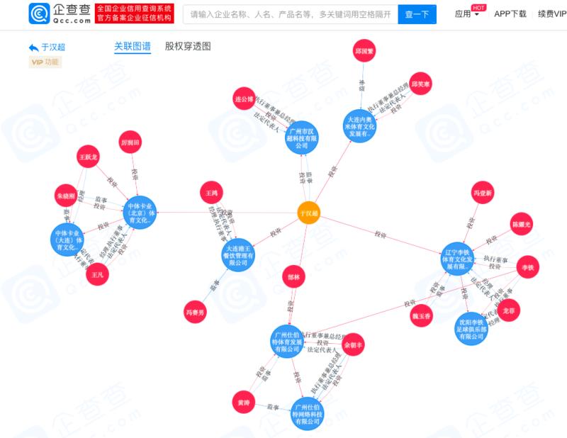 ▲于汉超旗下公司关联图谱,图片来源:企查查。