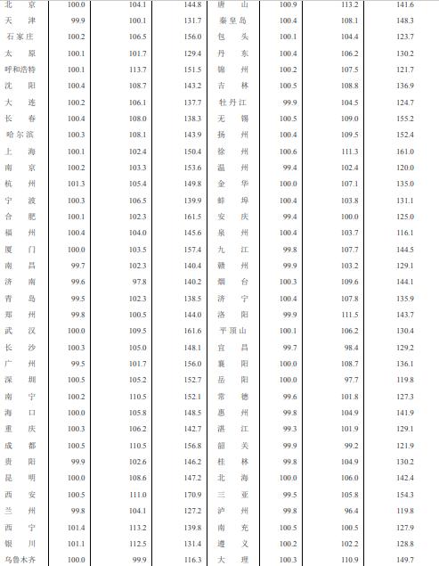 2020年3月70个大中城市新建商品住宅销售价格指数 数据来源:国家统计局