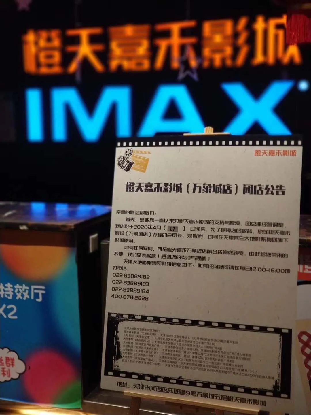 天津市橙天嘉禾影城(万象城店)闭店公告