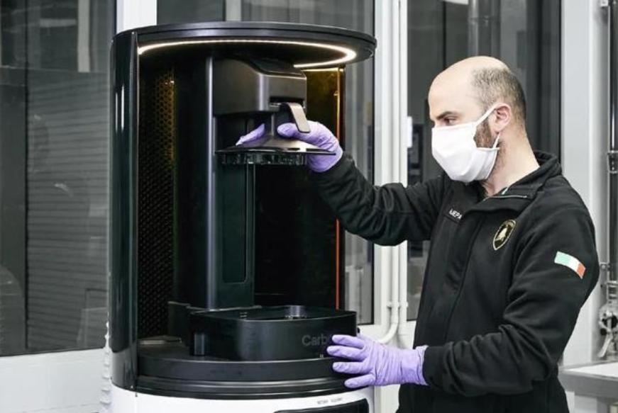 为了提高产能,兰博基尼还将自家用于生产跑车零件的Carbon3D打印机和数字光合成(DLS)技术投入到医用防护面罩的生产当中,该技术使用光和氧气从树脂池中快速生产产品。