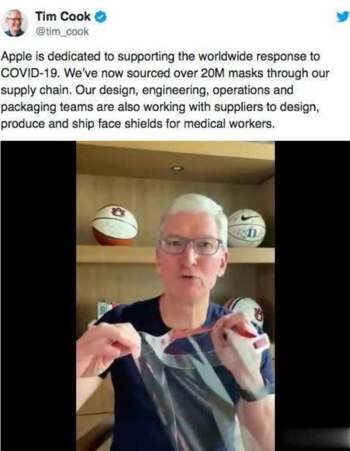 库克在推特上介绍苹果防护面罩,图片来自网络