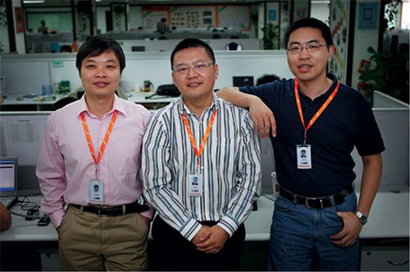 UC早期创始团队,从左至右为何小鹏、俞永福、梁捷