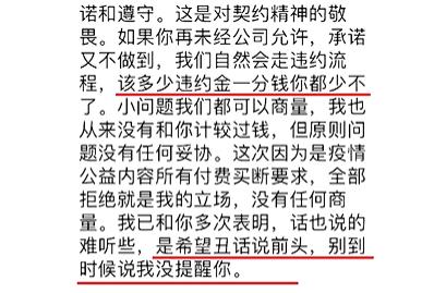 “甲方权利17项,乙方权利0项,甲方义务5项,乙方义务15项”,林晨这样用数字总结双方的合作合约。以拒绝拍摄一条有关疫情的商务视频为导火索,林晨遭到公司300万高价违约金的追责。