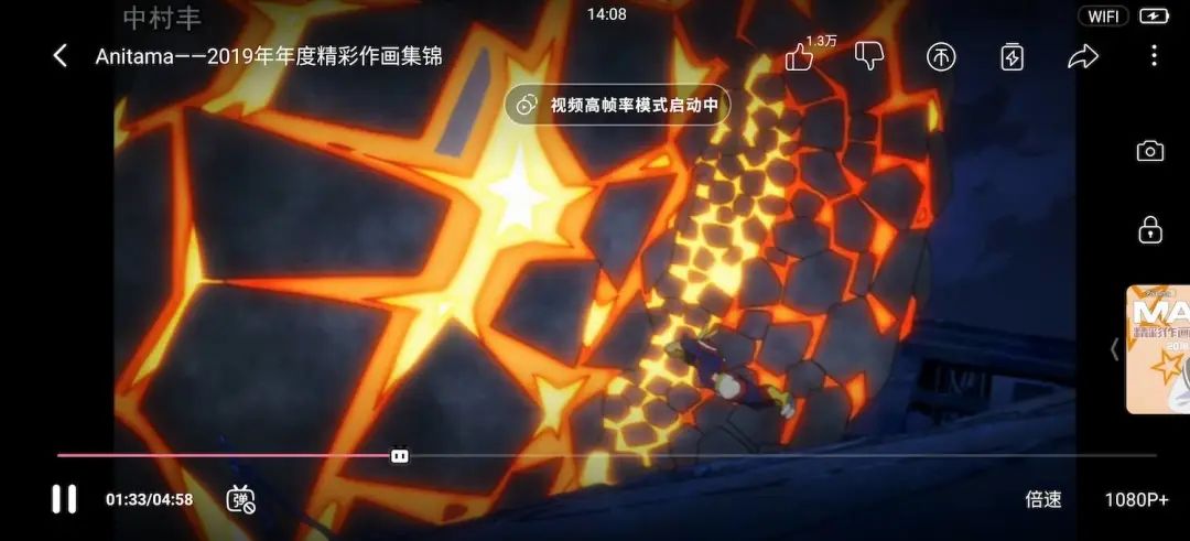哔哩哔哩全屏播放视频,能看到「高帧率模式启动中」的提示