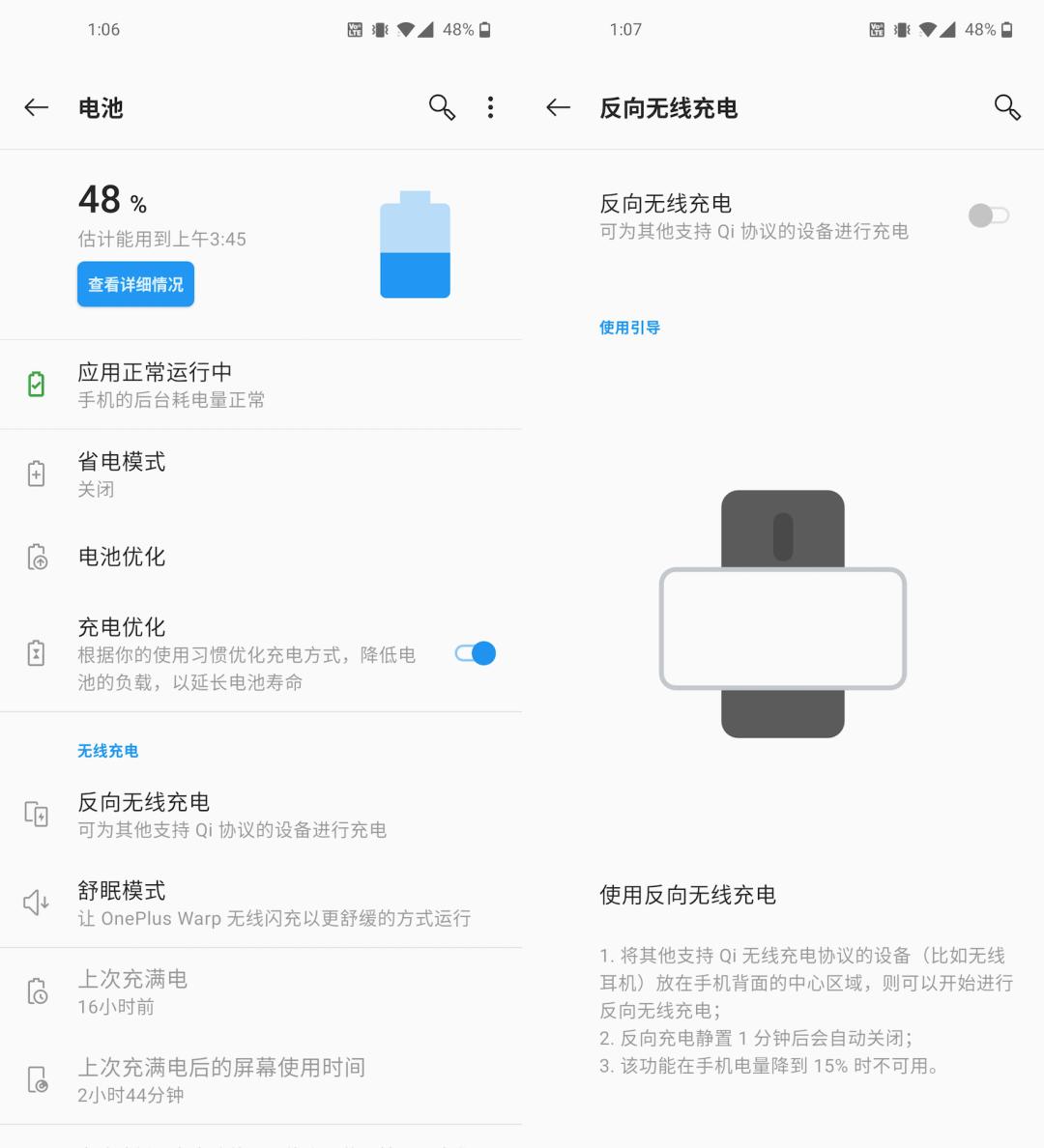我还在一加 8 Pro 的设置项中看到了「充电优化」特性。它和 iPhone 类似,会让机器主动学习你的入睡 / 起床习惯,暂缓将电池充满的时间,延长电池寿命。