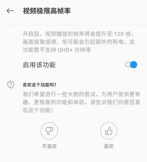 一加 8 Pro 还提供了一个「极限高帧率模式」,可以把视频强行插帧至 120 帧播放,但不支持在 QHD+ 分辨率下开启,应该是对续航影响较大。