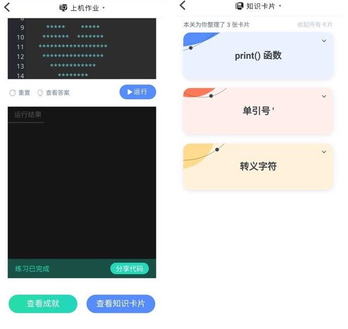 (上机作业和知识卡片界面)