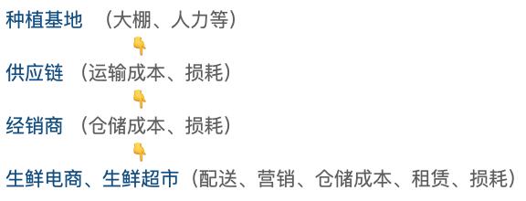 生鲜到达大城市后,供应链需要负担冷链储藏费,时间越久,生鲜的损耗越大,亏损越多。经销商也会面临同样的问题。平台同样,谁都避免不了损耗带来的亏损。