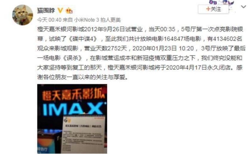同时,从成立便是天津票房前十名的橙天嘉禾银河影城也将在4月17日永久闭店,这家占地面积达到11000多平米,永远12个影厅2200个座位的超级影城结束了他不到十年的使命,成为在疫情期间结业的国内知名大影城之一。