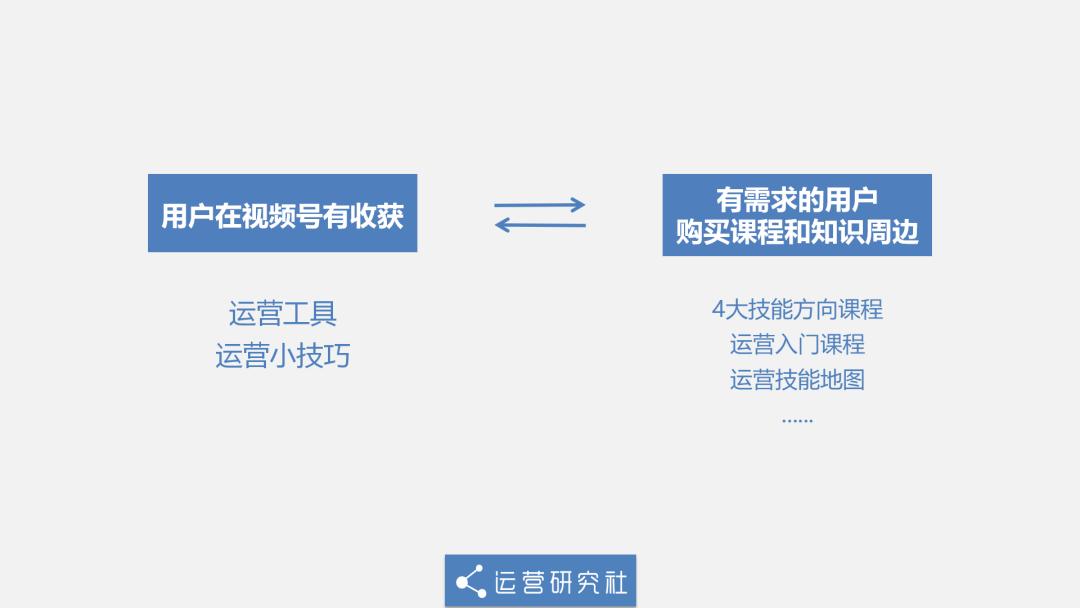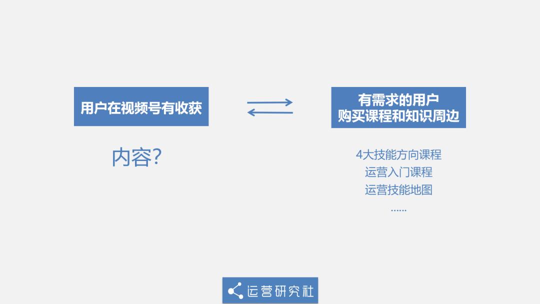 我们希望用户在我们的视频号中有收获,并且信任我们、认可我们,最终能够(在有需求的情况下)购买我们的课程和知识周边。