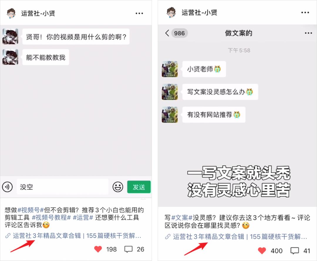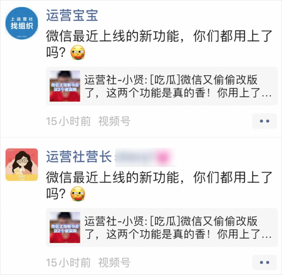 另一方面,视频号能够直接分享到群里和朋友圈,我们借助现有的私域流量,可以引导一些用户观看视频。内容有了播放量,又被认可点赞之后,就会被推荐给更多人,量也就起来了。