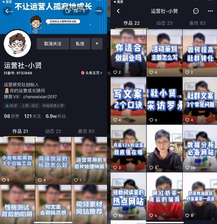 以我们的视频为例,我们目前的内容有 2 个方向,运营小技巧和运营工具。