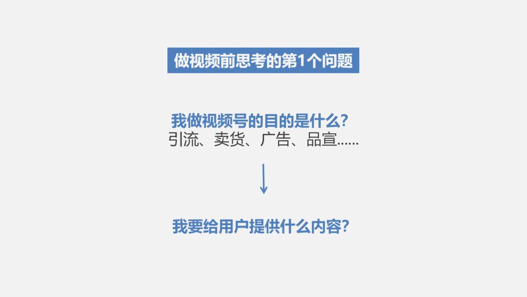 因此,在做视频号之前,一定要先把目的想清楚,是要做广告、卖货,还是引流?然后,再去思考,要给用户提供什么内容。