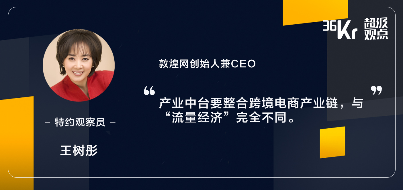 这些卖家不见得是在敦煌网自身的交易平台上去成交,但可以用到产业中台的服务能力,去在第三方平台上去完成交易。