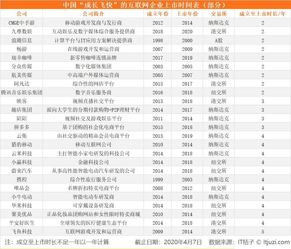 其中,典型的企业包括 2015 年成立的拼多多,经过 4 年成长实现上市。