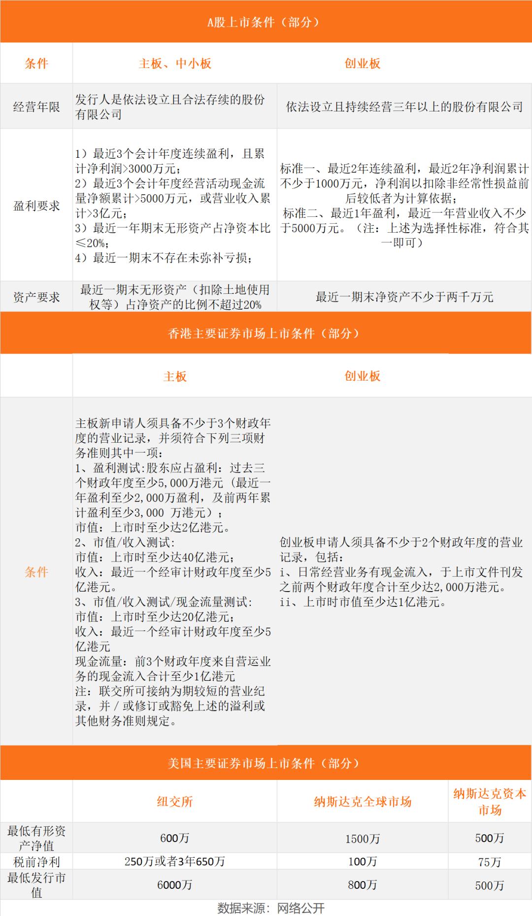 当前,相比较 A 股对企业经营、盈利等方面有着明确指标要求之外,港股和美股在盈利方面的门槛似乎更小一些。