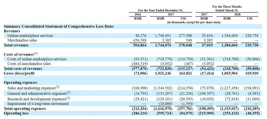 拼多多方面,截至 2018 年 Q1 累计亏损(含期权支出)为 13.12 亿元人民币。因此,他们能够在短时间内成功上市,也是利用了市场的规则。