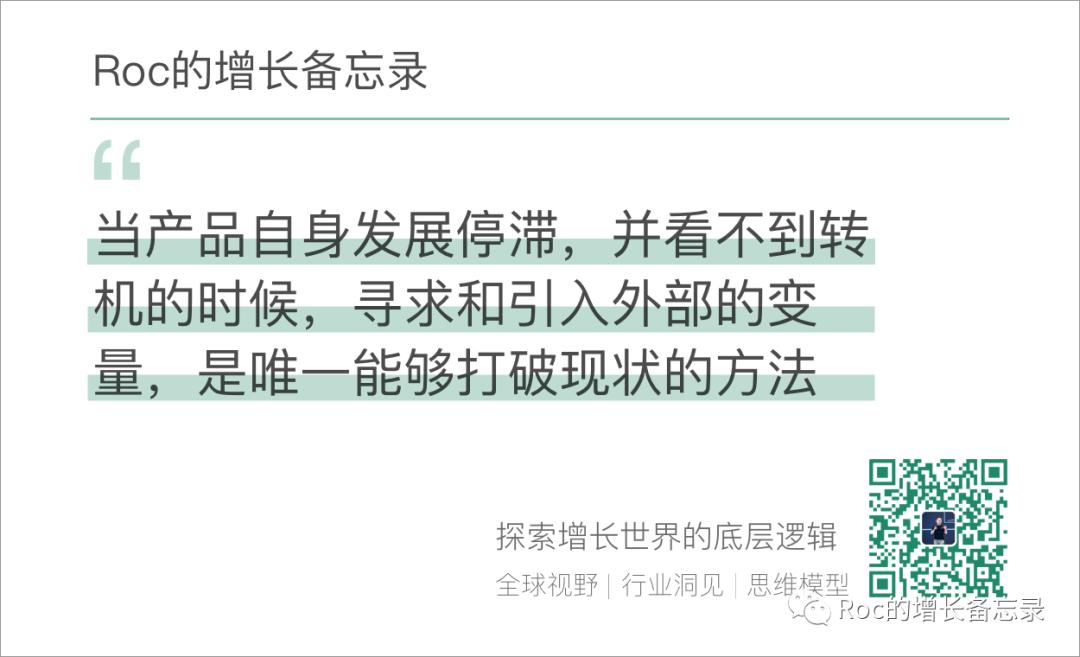 当产品自身发展停滞,并看不到转机的时候,寻求和引入外部的变量,是唯一能够打破现状的方法