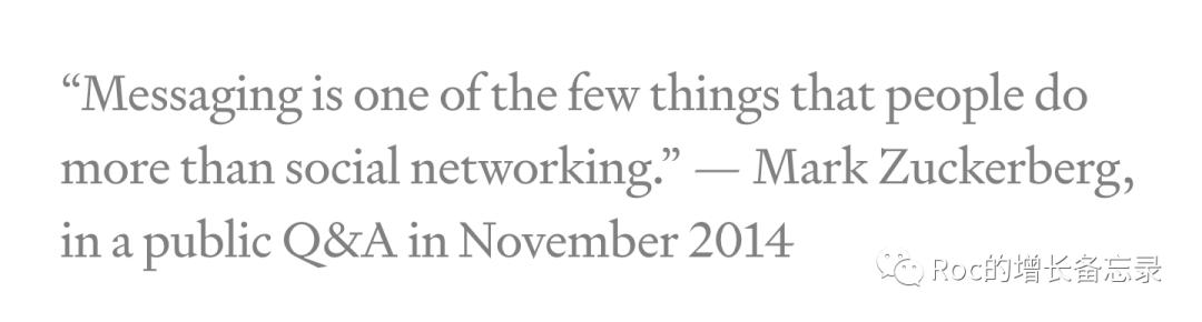 facebook的创始人扎克伯格曾经公开表示,“即时通讯软件(Messaging)是人们为数不多的使用频次比社交平台(social networking)更高的东西”。