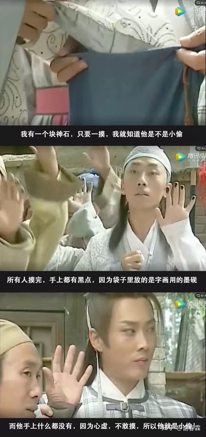 张捕快灵机一动,拿出一个袋子,跟大家说,我这袋子里有一块神石,只要你一摸,我就知道你是不是小偷。