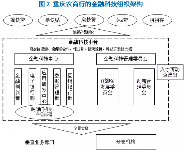 重庆农商行于2019年设立了金融科技中心,重点打造线上线下融合、面向场景的创新产品。另外,为了形成创新合力,中心设置产品部落、围绕重点产品配置研发和产品资源。