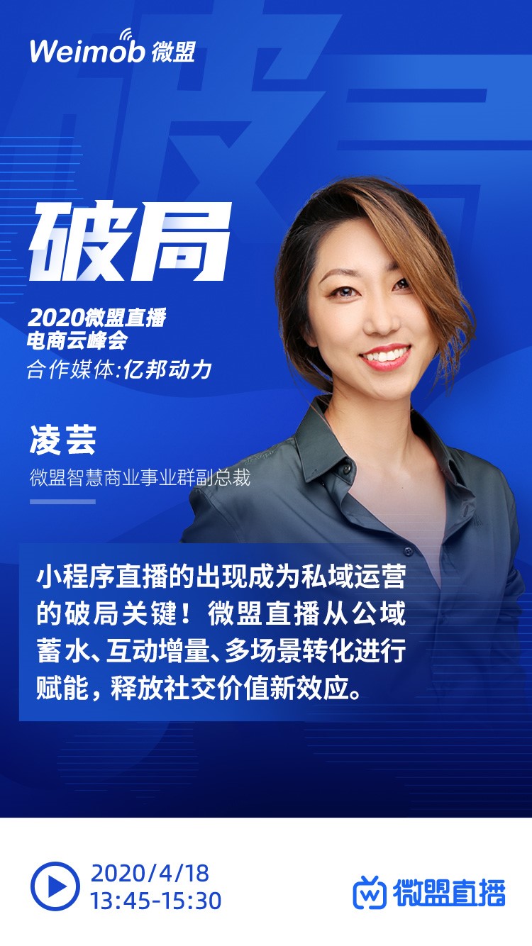 “直播离不开流量获取和用户滋养”,微盟智慧商业事业群副总裁凌芸在4月18日“2020微盟直播电商云峰会”上,一语道破了电商直播的核心。而微盟直播小程序致力于通过公域蓄水、私域流量沉淀、多场景转化等技术能力的打造,“破局”私域流量,将之发展成为企业的“标配营销能力”。