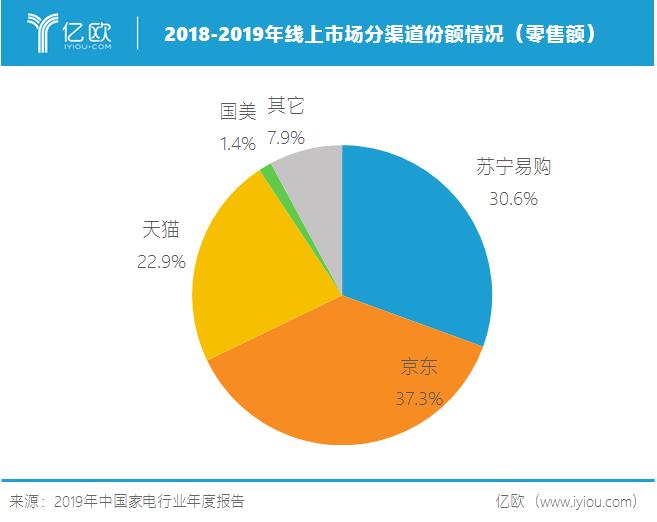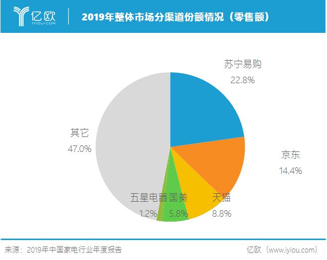 由中国家用电器研究院指导、全国家用电器工业信息中心编制的《2019年中国家电行业年度报告》显示,苏宁2019年度家电全渠道份额占比22.8%领跑,而国美占比5.8%。家电线上零售方面,苏宁份额占比30.6%,国美占比1.4%。