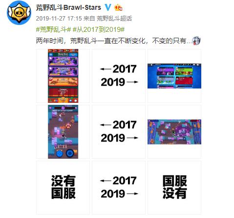 但因为种种因素,它在今年三月才拿到版号。在漫长的等待时间里,《荒野乱斗》的官方微博下面也产生了独特的催国服文化,有时候甚至简化成一个字:“国?”