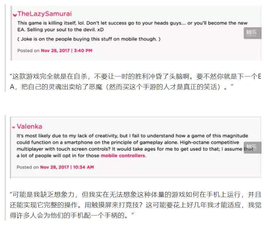 一些外国网友的声音/截自公众号“触乐”