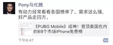2018年3月15日,刚刚完成开发的《PUBG Mobile》率先在加拿大开启测试,只针对小部分玩家开放注册。第二天,腾讯突然解除注册限制,游戏直接上线。5天后,成功登顶美国App Store游戏免费榜。