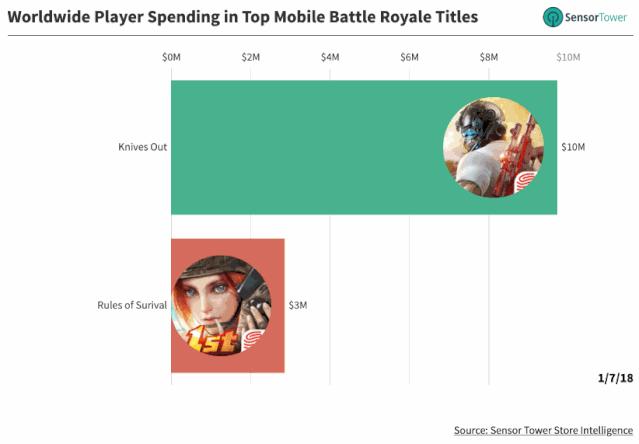 全球玩家在各大“吃鸡类”游戏的消费变化/图源SenseTower