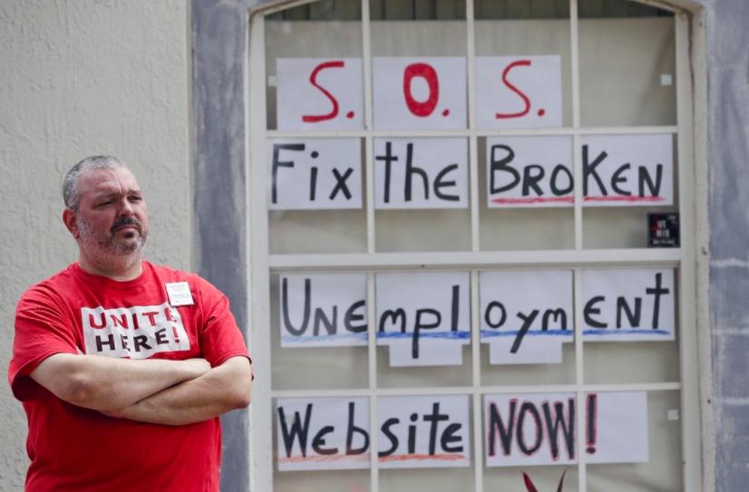 图为一名被放无薪假的迪士尼员工。图/美联社