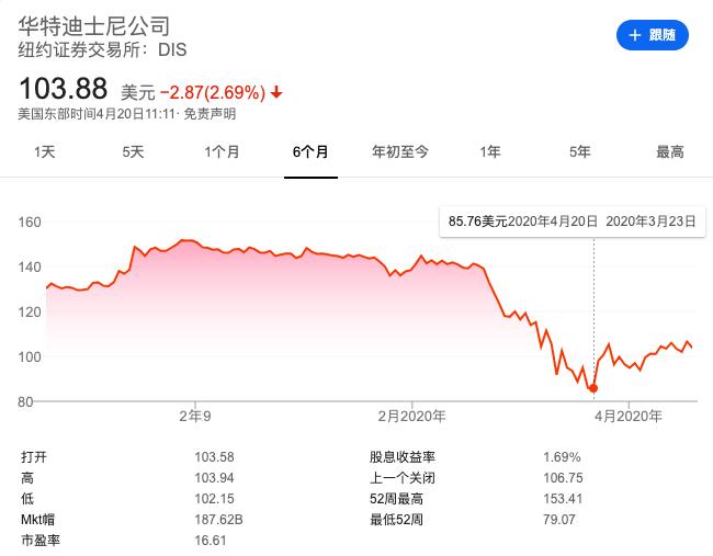 自新冠爆发,迪士尼市值已缩水25%,直到危机结束,迪士尼公司必须保证投资者仍然对股价抱有期待。