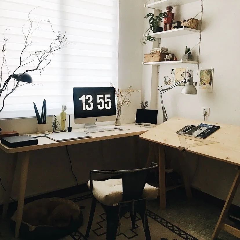 在一间被绿植包围的工作室里,有宠物、有鲜花、有阳光,还有烹饪中的美食和悠闲工作的好心情。