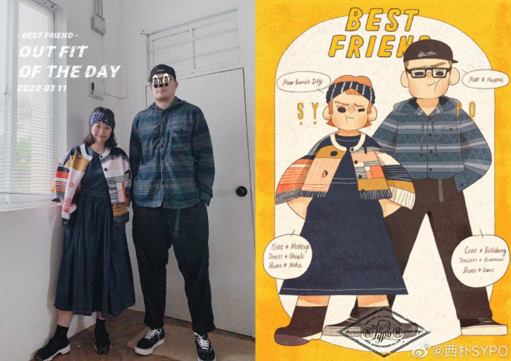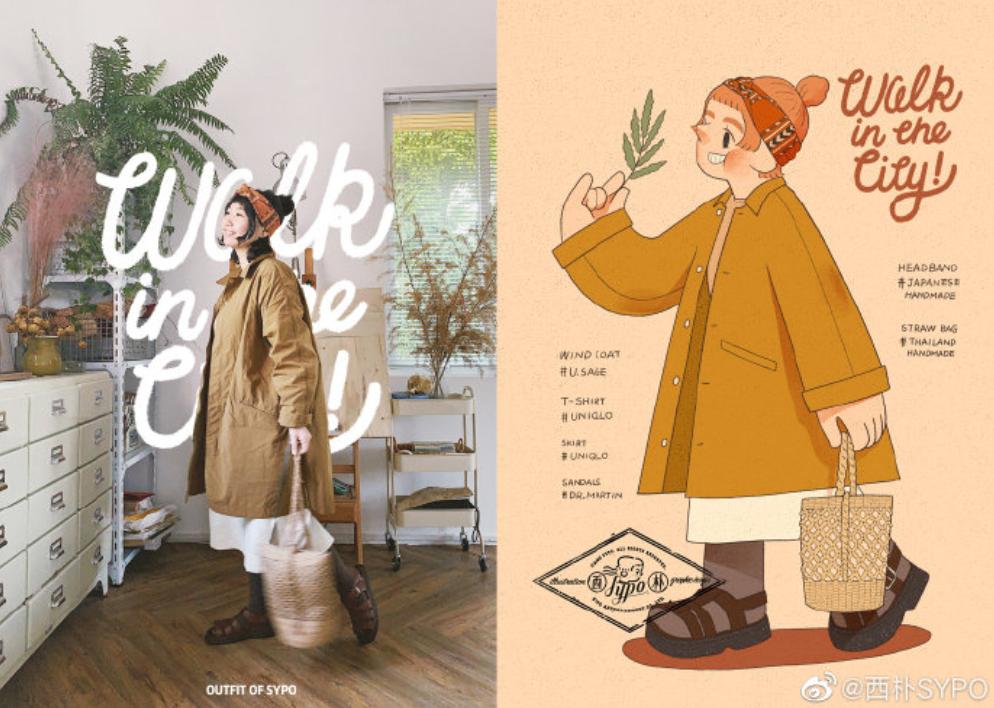 就像现在她在微博有一个固定专栏叫#西朴穿什么#,就是一个把自身特点和对穿搭的理解融合进插画里的小项目。