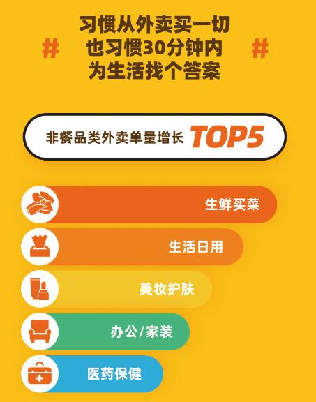 疫情高峰时期,依托外卖平台帮扶,以餐饮为首的各品类需求正在加速复苏,摆脱“寒冬”的影响。消费者也通过外卖平台获得更多的“生活食粮”和“生活用品”。美团外卖数据显示,复工复产后,非餐类订单保持平稳增速,生鲜买菜、生活日用、美妆护肤、办公/家装、医药保健成为外卖单量增长最快的五大非餐饮品类,通过外卖平台下单购买生活必需品,已逐渐成为人们新的生活方式和消费习惯。同时,在外卖订单层面,消费者也保留了无接触配送、分食享用、检查安心卡等习惯。