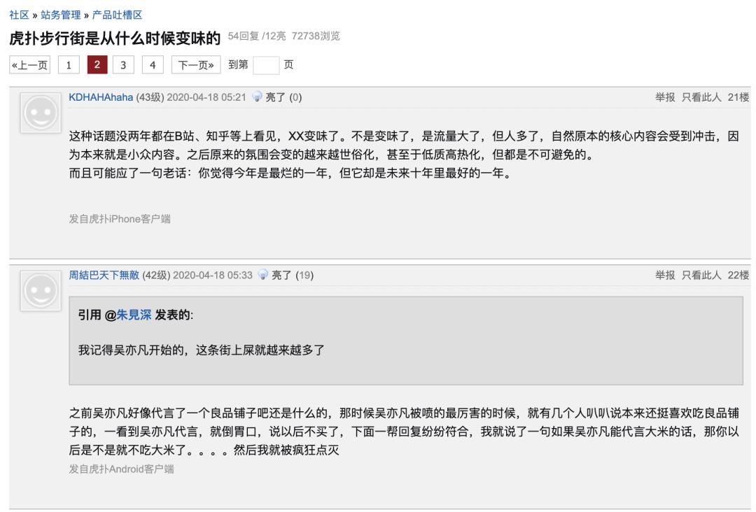 翻开虎扑这些年的发展历程,从先前手撕吴亦凡,再到炮轰B站UP主,在说句“今天有点热”都要小心翼翼的互联网世界上,有强烈观点以及引战属性的虎扑用户们已经近乎异类了。