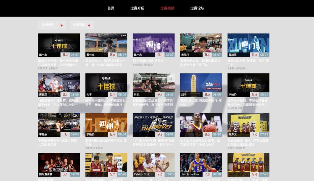 与此同时,虎扑自己一手创办的街球赛事“路人王”也成长为了颇具影响力的体育IP。在微博上,蓝V账号“路人王篮球”目前粉丝数量已经超过十万,“路人王篮球”标签话题的总阅读数达到了将近八千万。这个草根赛事还得到了赞助商的认可:阿迪达斯、脉动、快手、Wilson、NBA2KOnline等品牌,都是路人王年度总决赛的赛事官方赞助商——这也意味着,今天的虎扑已经拥有了一个具有商业价值,且市场前景得到了广告主认可的自有赛事IP,这个孵化能力无疑是大大给虎扑加分的。