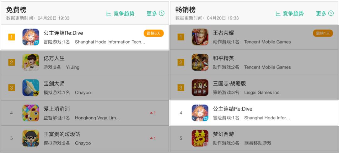 4月17日,随着《公主连结》的上线,iOS畅销榜前十拥有了4个二次元产品,新老霸主齐聚榜单头部,盛况空前。当现充遍地、从不讨论游戏相关内容的吹水微信群里,出现了大量晒四十连抽出货的欧洲人发言,我意识到,《公主连结》在国内的出圈之路已经走起来了,一如几年前的《FGO》。