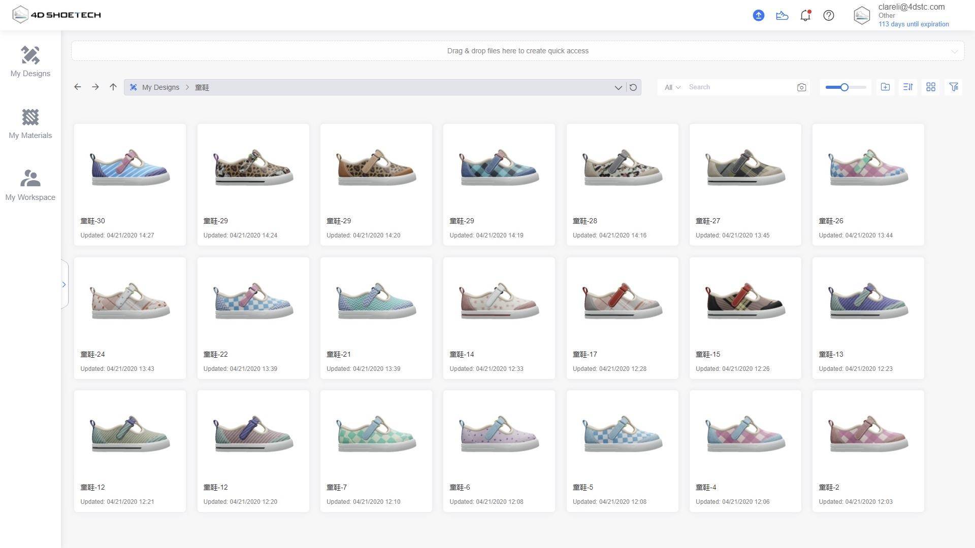 而通过时谛的3D数字化设计平台,整个流程可被压缩至6周,其中设计修改定稿仅需1天,然后便可通过3D模型导出2D纸板制作鞋面、用3D打印制作鞋底,快速得到第一只样品鞋。另外,通过平台的协同管理功能,品牌内部各部门和外部材料供应商,鞋厂都可在线沟通信息同步,甚至可在设计环节就提出潜在的风险预估,减少后期返工重新修改设计方案。
