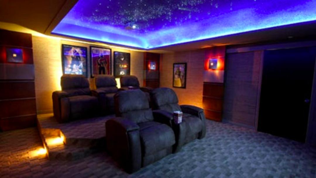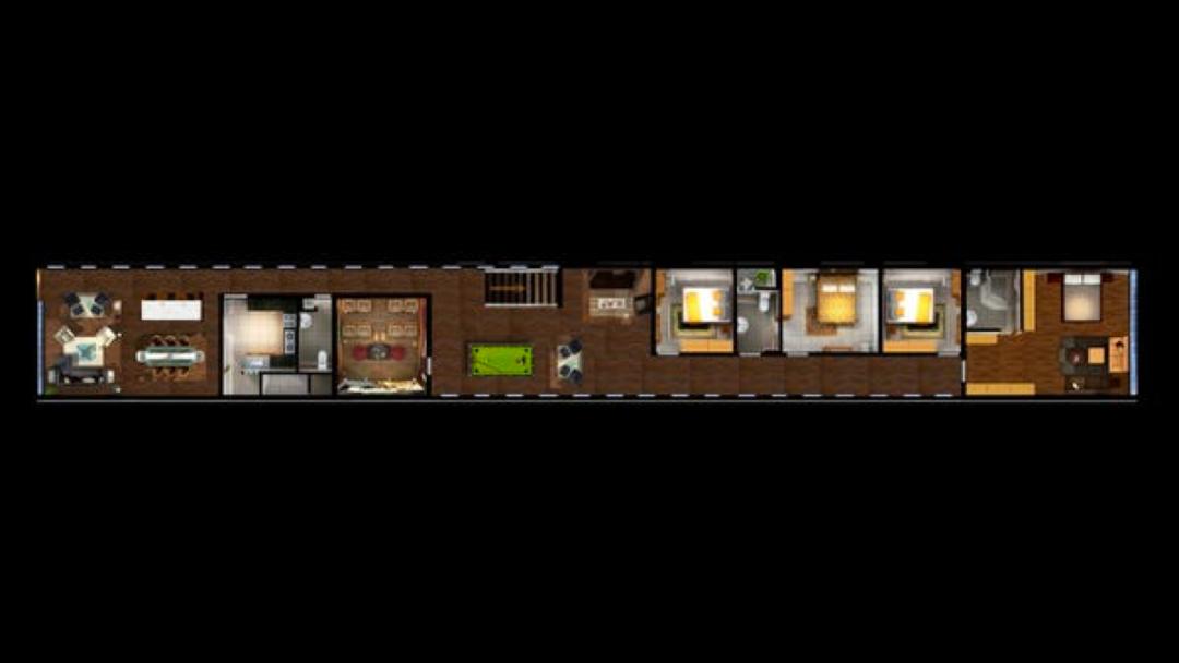 典型的居住区有两层。在较低的楼层(如下所示),有多个卧室,一个台球桌和一个电影院。