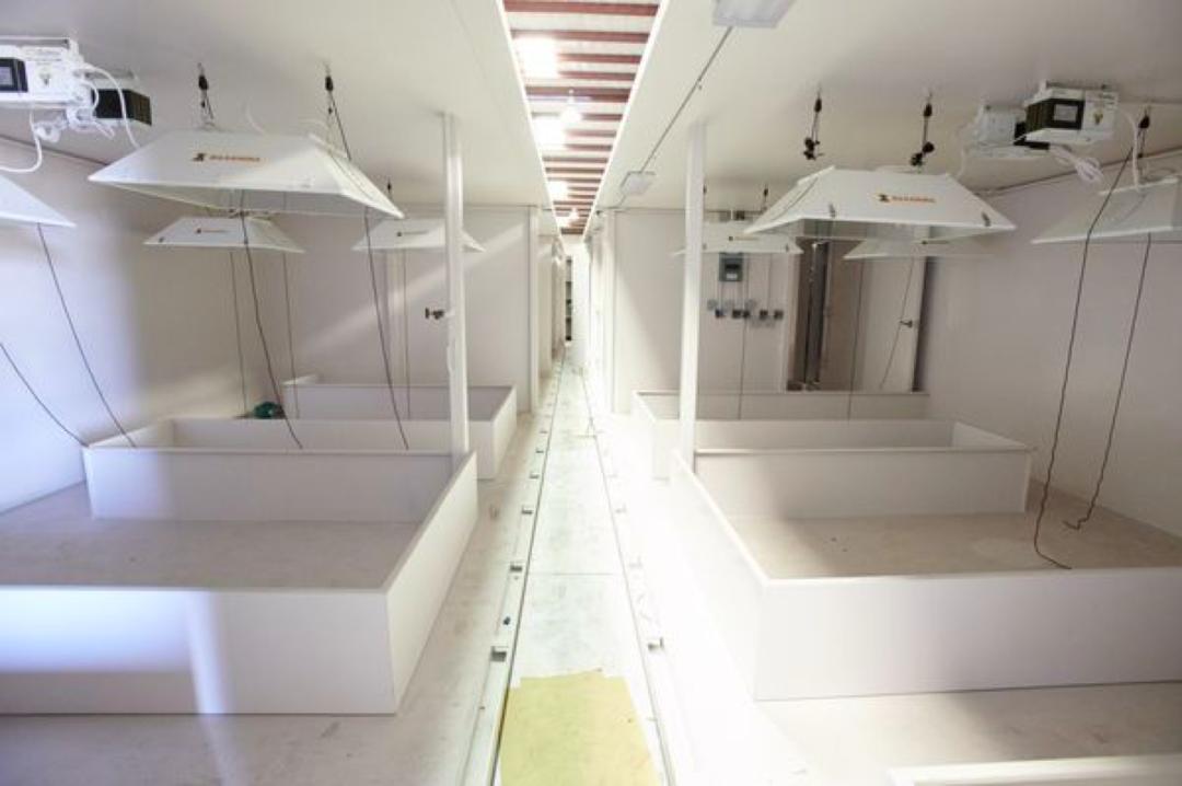 位于德克萨斯州默奇森的Rising S Co.制造工厂的豪华钢制掩体内正在建造的温室