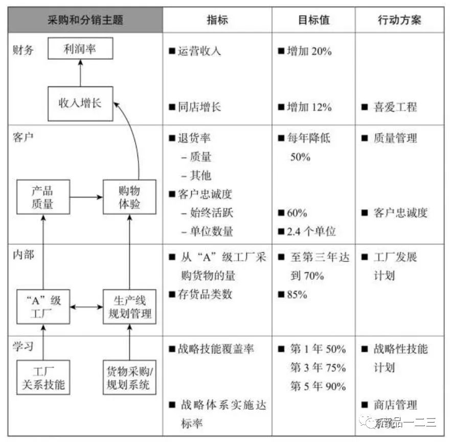 《战略中心型组织》一书中对于一家服装零售公司的战略地图架构绘制如下: