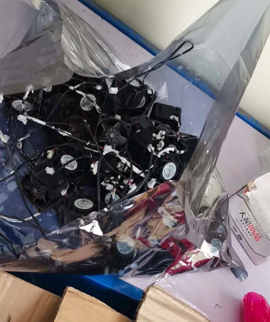 换下来的蚂蚁矿机电源风扇,供图:林凯春