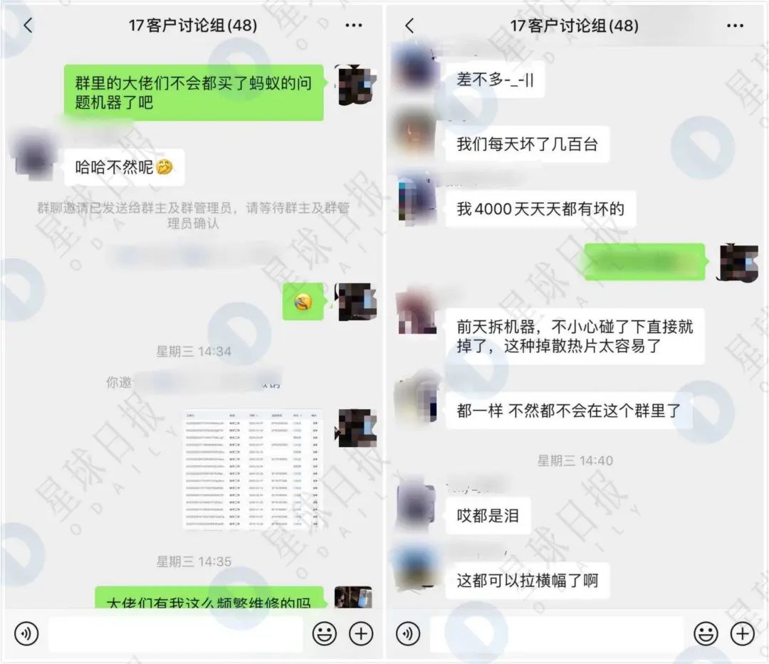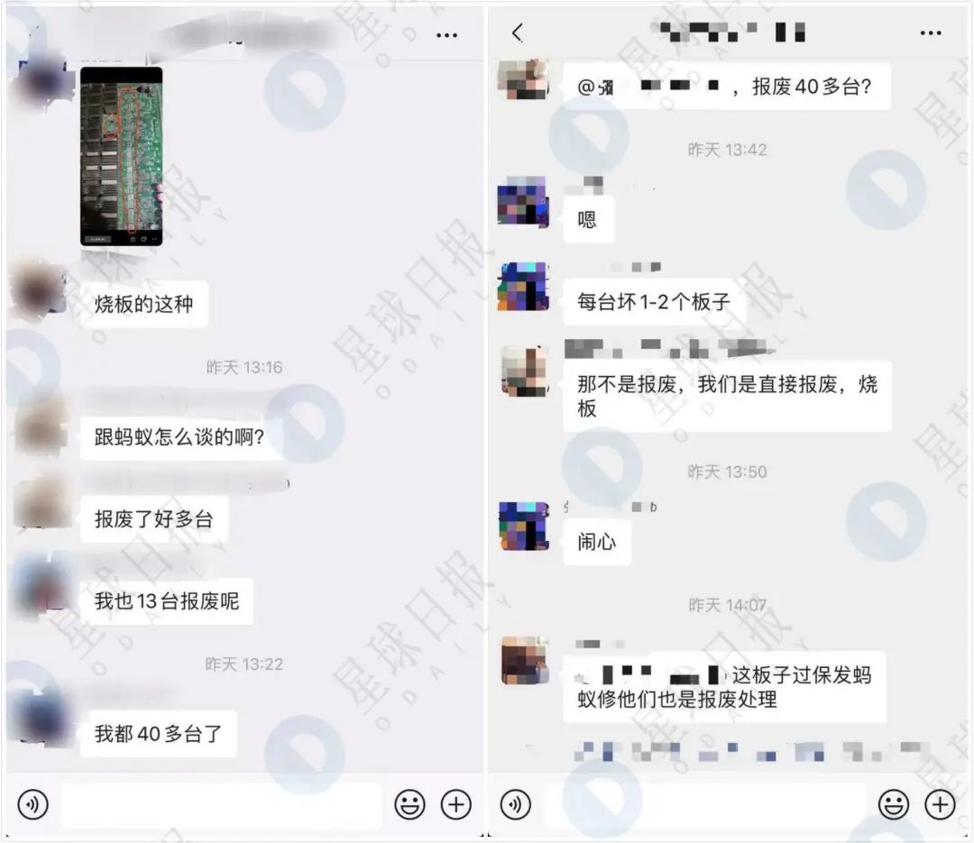 至 23 日下午,蚂蚁矿机团队官方发布公告称,“已密切关注问题并与客户积极沟通处理。针对因产品问题导致收益受损的部分客户进行了收益损失赔偿、对发、换新机发货、免费驻场维修、远程或上门协助解决等方案。”
