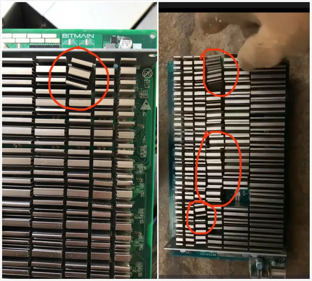 由于散热片较小、又连着芯片,更是增加了维修难度,一般矿场很难配有如此专业的人员,因此只能交由厂家处理。