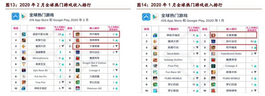 在世界2010-2019年游戏累计收入排行榜中,王者荣耀位居第6,腾讯2019Q4开始并表Supercell,旗下游戏《部落冲突》位居第1。2020年1月和2月。王者荣耀和和平精英持续位居全球热门游戏收入排行TOP 10。