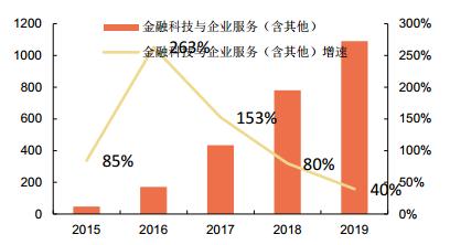 这一部分的毛利率也在逐步提高,2016-2019年毛利率分别为16%、22%、24%、27%,对公司毛利的贡献持续增长, 2016-2019 年分别为3%、8%、13%、17%。2019Q1开始金融科技与企业服务分部单独披露。